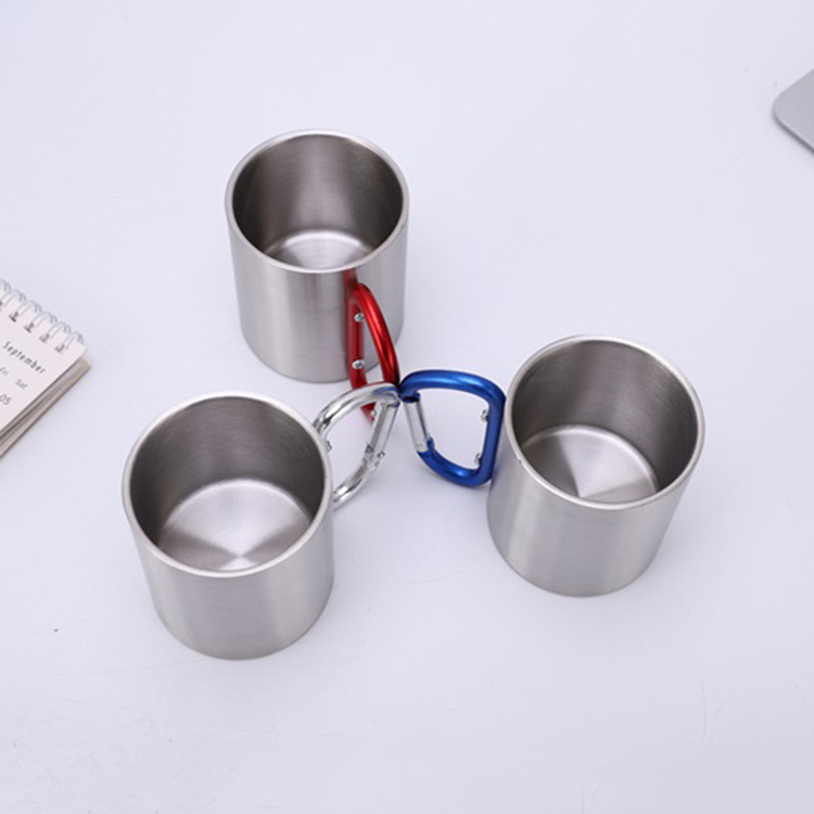 ক্যাম্পিং ডাবল ওয়াল স্টেইনলেস স্টীল ভ্রমণ টাম্বলার ফ্লাস্ক। আউটডোর অ্যাডভেঞ্চারের জন্য আপনার চূড়ান্ত পোর্টেবল তাপীয় সমাধান। এই 220ml স্টেইনলেস স্টিল টাম্বলারে ডাবল-ওয়াল ভ্যাকুয়াম ইনসুলেশন এবং একটি সুবিধাজনক ক্যারাবিনার হ্যান্ডেল রয়েছে। ভ্রমণের জন্য উপযুক্ত, এটি ঠান্ডা এবং গরম উভয় পানীয়ের জন্য সর্বোত্তম তাপমাত্রা বজায় রাখে।