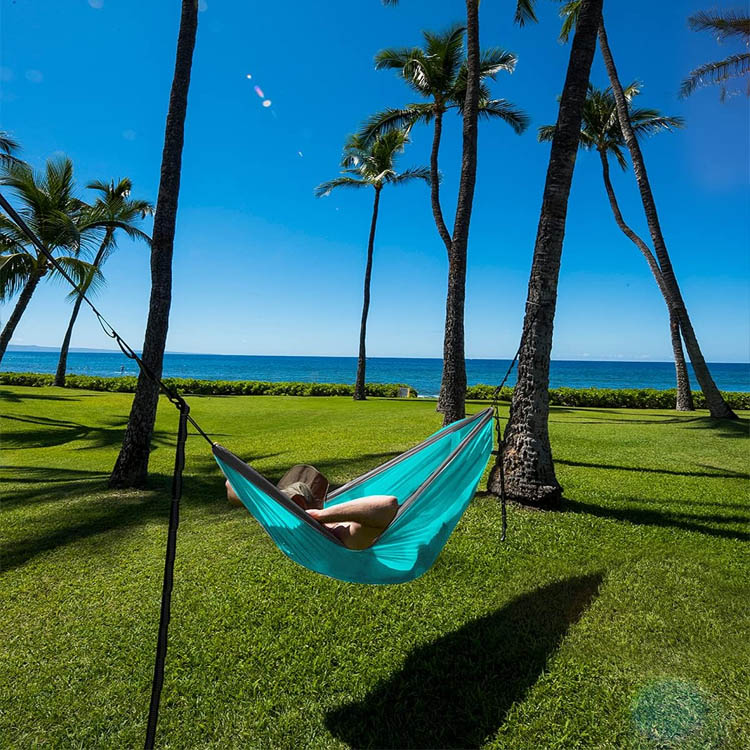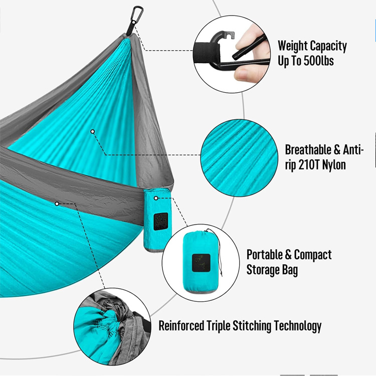 ডায়মন্ড বুনন প্যাটার্ন সহ খাঁটি 70D রিপস্টপ নাইলন থেকে তৈরি, এই হ্যামক বিভিন্ন আবহাওয়ার জন্য শক্তি, শ্বাস-প্রশ্বাস এবং দ্রুত শুকানোর পারফরম্যান্সের নিখুঁত ভারসাম্য সরবরাহ করে।