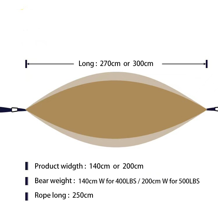 একক শিথিলকরণ এবং ডবল সাহচর্য উভয়ের জন্য পুরোপুরি ডিজাইন করা হয়েছে। এই হ্যামক দুটি প্রাপ্তবয়স্কদের জন্য পর্যাপ্ত স্থান এবং বলিষ্ঠ সহায়তা প্রদান করে, এটিকে রোমান্টিক যাত্রা বা একক অভিযানের জন্য আদর্শ করে তোলে।