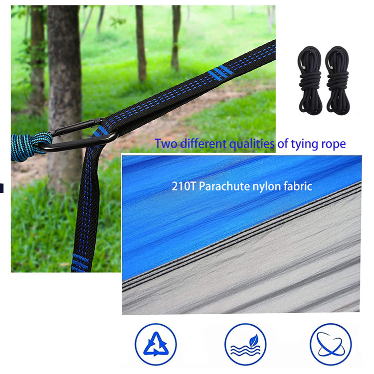 ক্যাম্পিং হ্যামক পোর্টেবল হ্যামক আউটডোর ইনডোর Single.Your Ultimate Portable Retreat for the Indoor and Outdoor Relaxation. এই বহুমুখী হ্যামকটি একক অ্যাডভেঞ্চার বা দুজনের জন্য আরামদায়ক মুহূর্তগুলির জন্য দক্ষতার সাথে ডিজাইন করা হয়েছে। এর লাইটওয়েট, প্যাকেবল ডিজাইন এটিকে যেকোন ক্যাম্পিং ট্রিপ বা বাড়ির পিছনের দিকে যাওয়ার পথের জন্য একটি অপরিহার্য সঙ্গী করে তোলে।