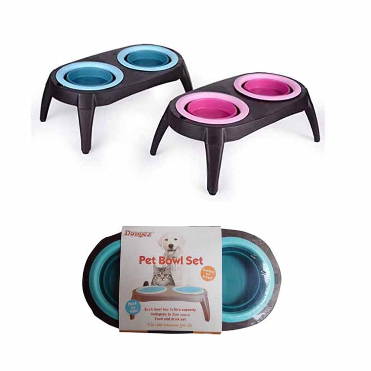 ছোট কুকুরের কুকুরছানা জন্য কুকুর কুকুরের খাবার বাটিগুলি এলিভেটেড ডিশ স্ট্যান্ড, ট্র্যাভেল ইউজ উত্থিত পোষ্য খাদ্য জল ফিডার সেট করুন