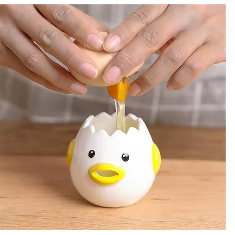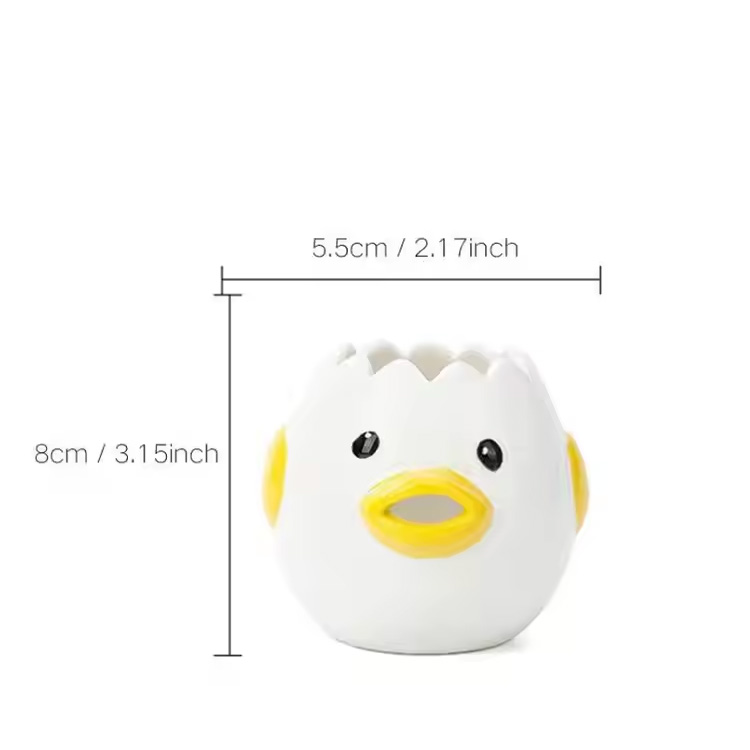 ডিম হোয়াইট হোয়াইট বিভাজক ক্যাটারিং রান্না বেকিং গ্যাজেটস। ক্রিয়েটিভ সিরামিক ডিম বিভাজক বুদ্ধিমান ছানা ডিজাইনের সাথে– ডিমের সাদা থেকে সহজেই ডিমের কুসুম আলাদা করুন– বেকিং, রান্না বা ক্যাটারিংয়ের জন্য নিখুঁত রান্নাঘর সরঞ্জাম– টেকসই, পরিষ্কার করা সহজ এবং ব্যবহার করা মজাদার– হোম শেফদের জন্য আদর্শ উপহার।