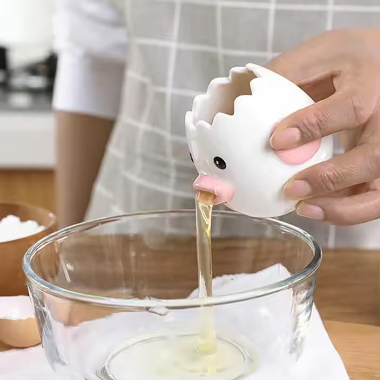 এই ডিম বিভাজকটিতে একটি সুন্দর ছানা-আকৃতির নকশা রয়েছে যা তাত্ক্ষণিকভাবে মনোযোগ আকর্ষণ করে। এটি কেবল ব্যবহারিকই নয়, তবে যে কোনও রান্নাঘরে একটি কৌতুকপূর্ণ স্পর্শও যুক্ত করে, এটি হোম বেকার এবং রান্নার উত্সাহীদের জন্য প্রিয় করে তোলে।