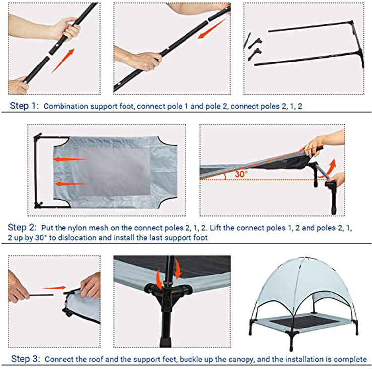 ✔【শক্ত ইস্পাত ফ্রেম এবং পা】চারটি স্থিতিশীল নন-স্কিড ফুট সহ একটি মজবুত পাউডার-কোটেড স্টিলের ফ্রেম বিছানা এবং ছাউনিকে নিরাপদে জায়গায় রাখে এবং ধাতব পাইপের পা পোষা খাটের সুরক্ষা এবং টিপ না দেওয়া নিশ্চিত করতে সহায়তা করে। মিডল বিমগুলি আপনার পশম বন্ধুদের জন্য অতিরিক্ত সহায়তা প্রদান করে৷ আমাদের উন্নত পোষা বিছানা? ক্যানোপি সহ একত্রিত করা এবং বিচ্ছিন্ন করা সহজ, কোনও সরঞ্জামের প্রয়োজন নেই৷ এছাড়াও, এটি সর্বাধিক সুবিধার জন্য তার নিজস্ব ছোট ক্যারি ব্যাগ সহ আসে!