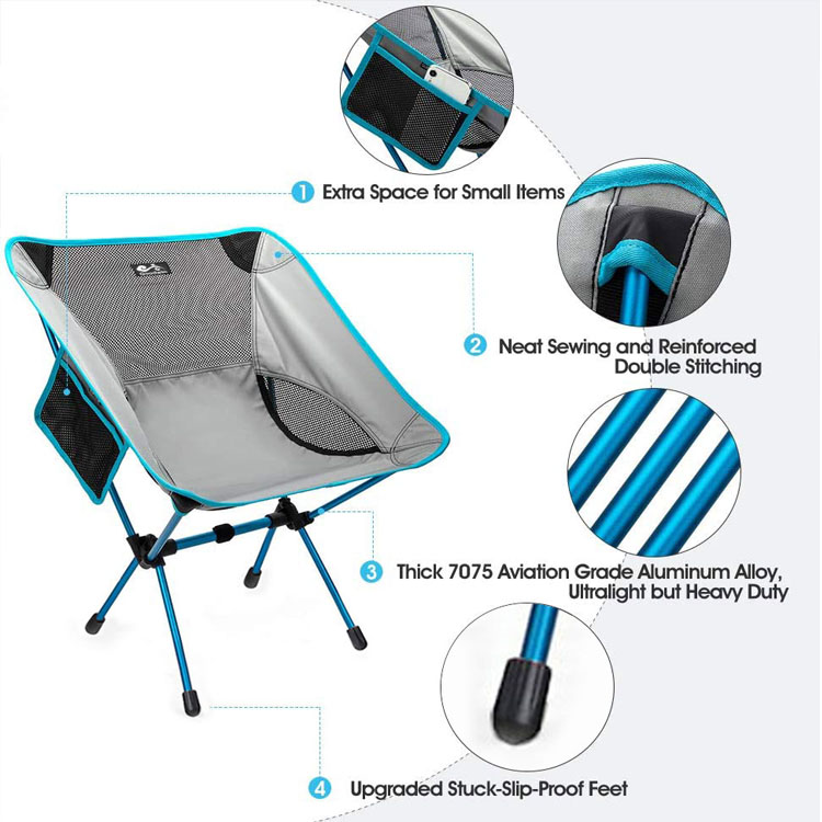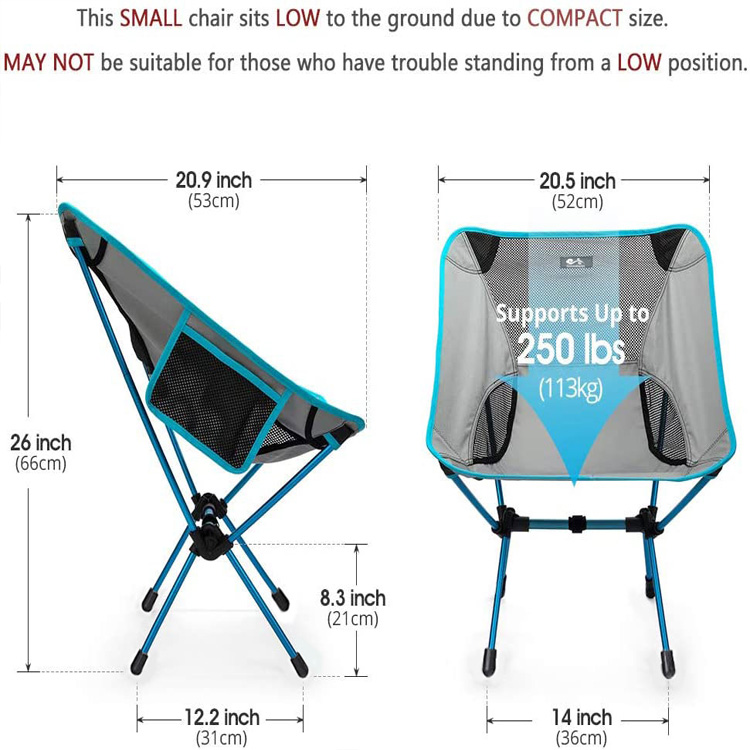 আল্ট্রা-লাইটওয়েট পোর্টেবল কমপ্যাক্ট ফোল্ডিং ক্যাম্পিং চেয়ার। এই আল্ট্রা-লাইটওয়েট পোর্টেবল ফোল্ডিং চেয়ারের সাথে যেকোনো জায়গায় আরাম উপভোগ করুন। কমপ্যাক্ট এবং সহজ স্টোরেজ ব্যাগের সাথে বহন করা সহজ, এটি’s সমুদ্র সৈকত ভ্রমণ, ক্যাম্পিং, ব্যাকপ্যাকিং, হাইকিং বা যেকোন আউটডোর অ্যাডভেঞ্চারের জন্য উপযুক্ত যেখানে আরাম মেলে।