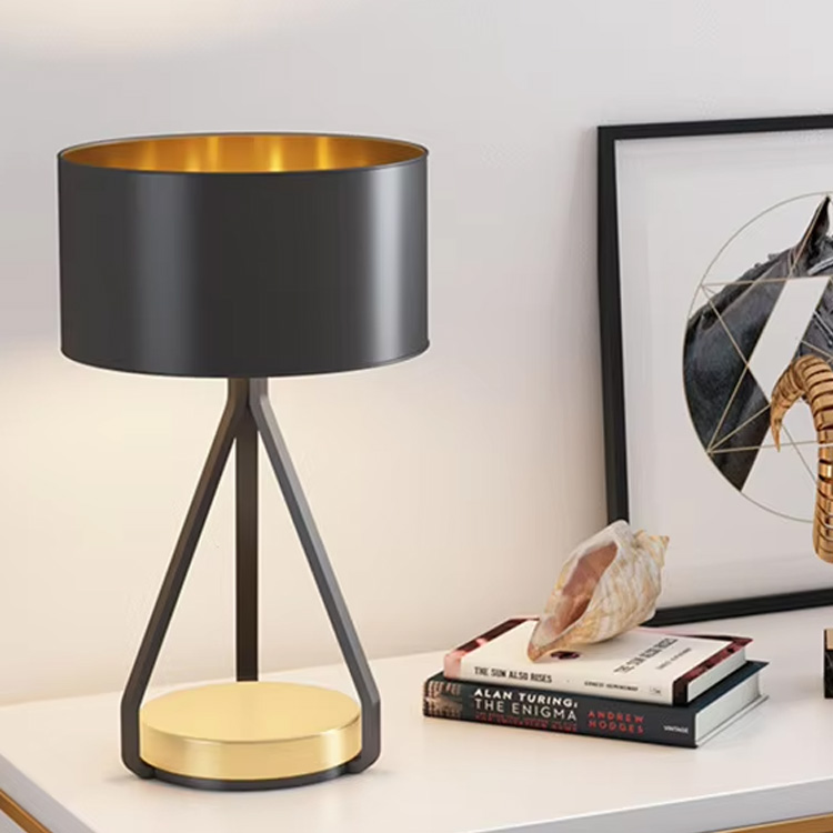 হোটেল মডার্ন ব্ল্যাক বেডসাইড বেডরুম ডিজাইন টেবিল ল্যাম্প। একটি মসৃণ জ্যামিতিক বেস ডিজাইন সমন্বিত আধুনিক কালো এবং সোনার টেবিল ল্যাম্প। যে কোনো রুম উঁচু করার জন্য পারফেক্ট’উষ্ণ, পরিবেষ্টিত আলো এবং মার্জিত সাজসজ্জা সহ স্টাইল।