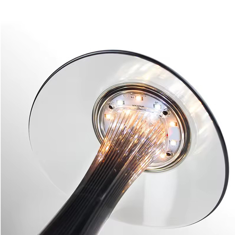✅মার্জিত নান্দনিক: ল্যাম্পটি একটি মসৃণ, আধুনিক ডিজাইনের সাথে একটি আকর্ষণীয়ভাবে বাঁকা স্বচ্ছ ল্যাম্পশেডের গর্ব করে, এটি যেকোনো সমসাময়িক বাড়ি বা অফিসের সেটিংয়ে একটি আড়ম্বরপূর্ণ সংযোজন করে তোলে।