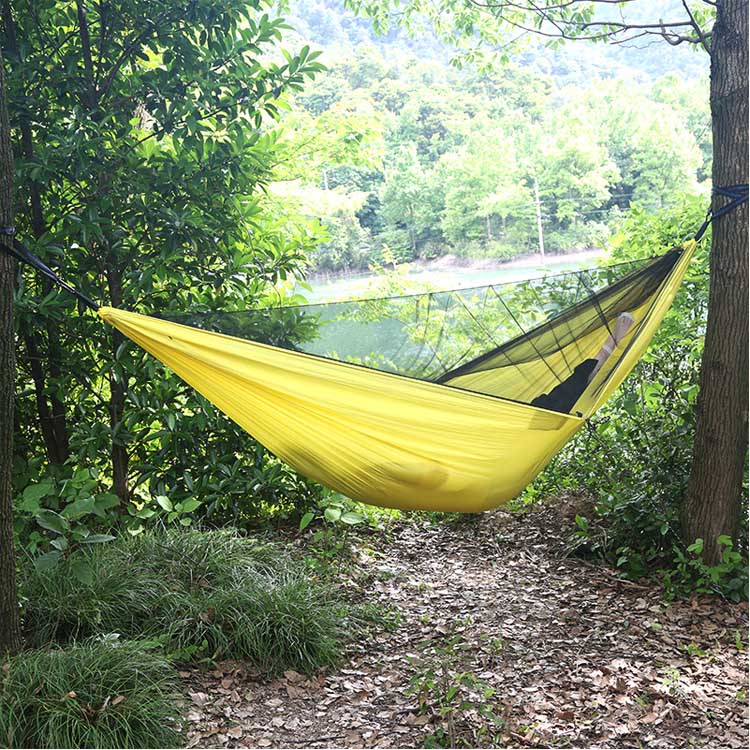 সূক্ষ্ম-জাল জাল একটি জিপারযুক্ত এন্ট্রি সিস্টেমের সাহায্যে হ্যামকটিকে সম্পূর্ণরূপে আবৃত করে, চমৎকার বায়ুপ্রবাহ বজায় রেখে মশা এবং অন্যান্য কামড়ানো পোকামাকড়ের বিরুদ্ধে একটি দুর্ভেদ্য বাধা তৈরি করে।