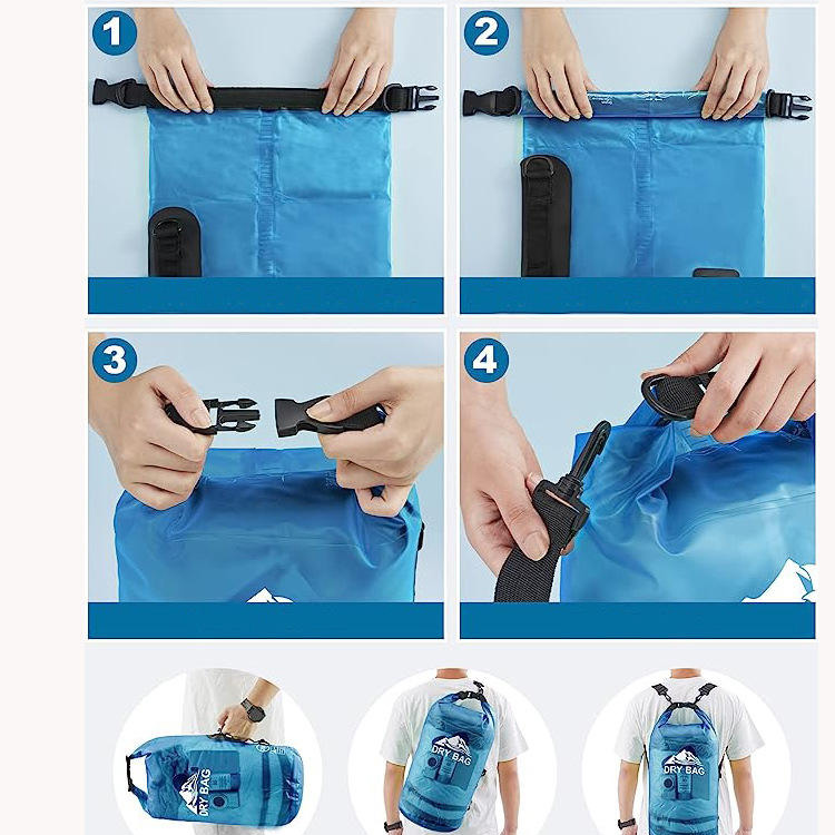 রোল টপ পোর্টেবল সহজ ব্যবহার স্বচ্ছ শুকনো ব্যাগ বহন