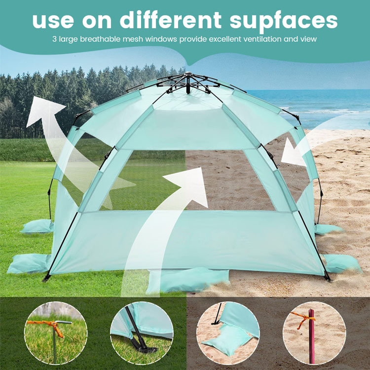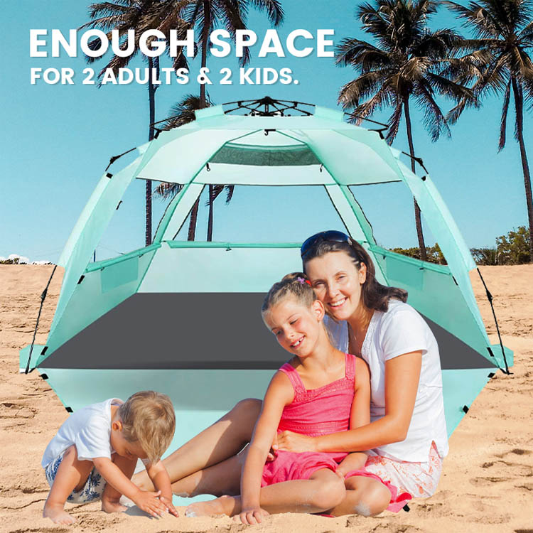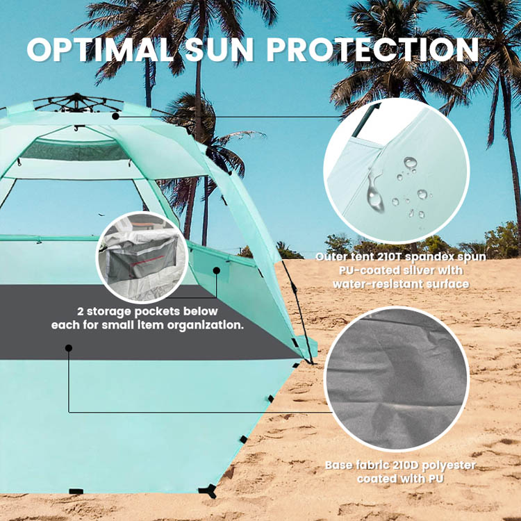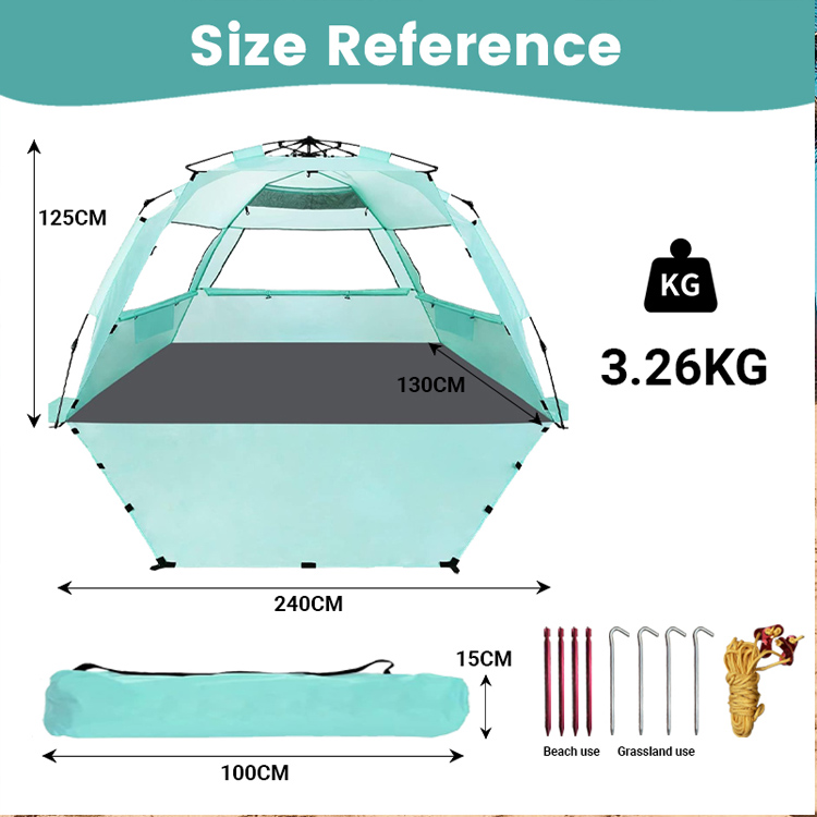 বিশেষায়িত সিলভার-কোটেড ফ্যাব্রিক 98% ক্ষতিকারক UV রশ্মিকে ব্লক করে এবং চমৎকার বায়ুপ্রবাহ বজায় রাখে, বর্ধিত সৈকতে থাকার জন্য একটি শীতল ছায়াযুক্ত এলাকা তৈরি করে।