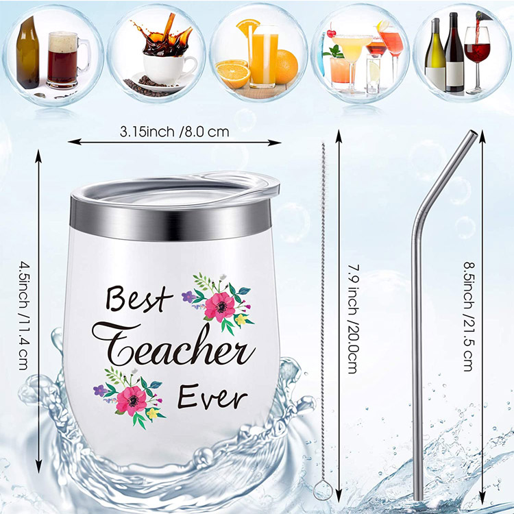 ব্যক্তিগতকৃত ইনসুলেটেড স্টেইনলেস স্টীল ওয়াইন টাম্বলার।2 পিস সেরা শিক্ষক সর্বকালের সেরা ওয়াইন টাম্বলার মহিলাদের জন্য প্রশংসা উপহার শিক্ষকদের জন্য ধন্যবাদ স্নাতক জন্মদিনের উপহার 12 oz স্টেইনলেস স্টীল ঢাকনা এবং খড় সহ ইনসুলেটেড টাম্বলার